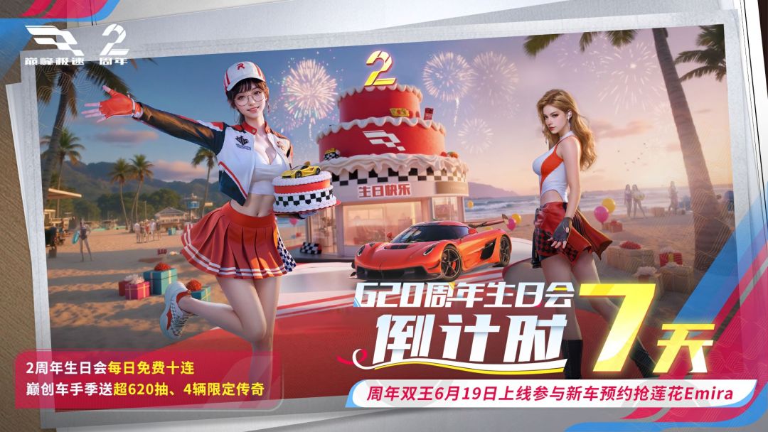 倒计时引擎已拉满转速!点燃热血的不止620的福利,还剩最后7天《巅峰极速》2周年生日会就要开启啦!