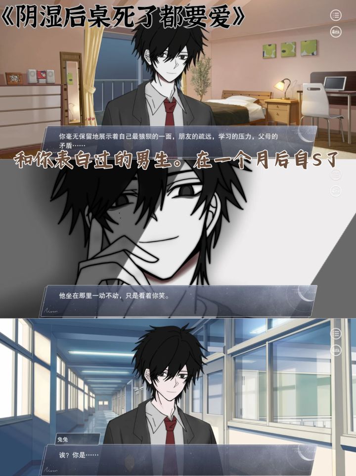 ⭕游戏设定:高二时,你被后桌的男生鼓起勇气表白。你拒绝了这份突如其来的表白,本以为这只是青春里的小插曲,却在一个月后听到了他自杀的消息...在一个阴雨绵绵的早晨,你推开教室门,赫然发现——那个已经死去的后桌,正完好无损地坐在他的位置上,对你露出熟悉的微笑...他的最大愿望是和你在一起,你会如何选择?