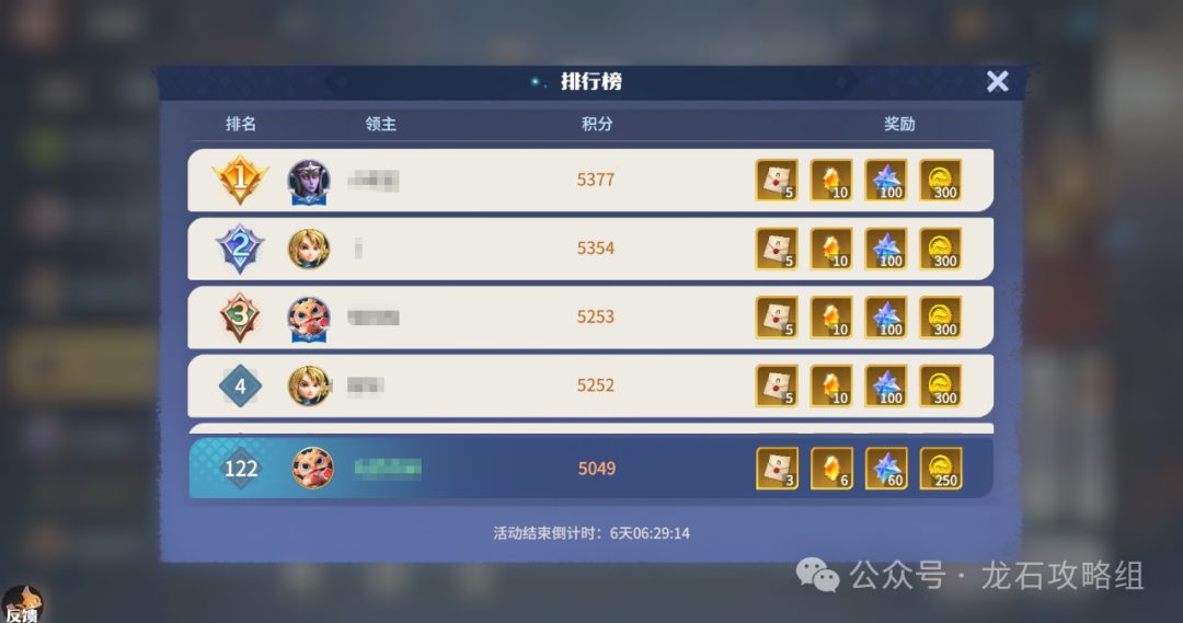 2、奖励按照积分排名结算,奖励含有英雄邀请函、卓越龙石碎块、原初星芒、龙币以及称号。