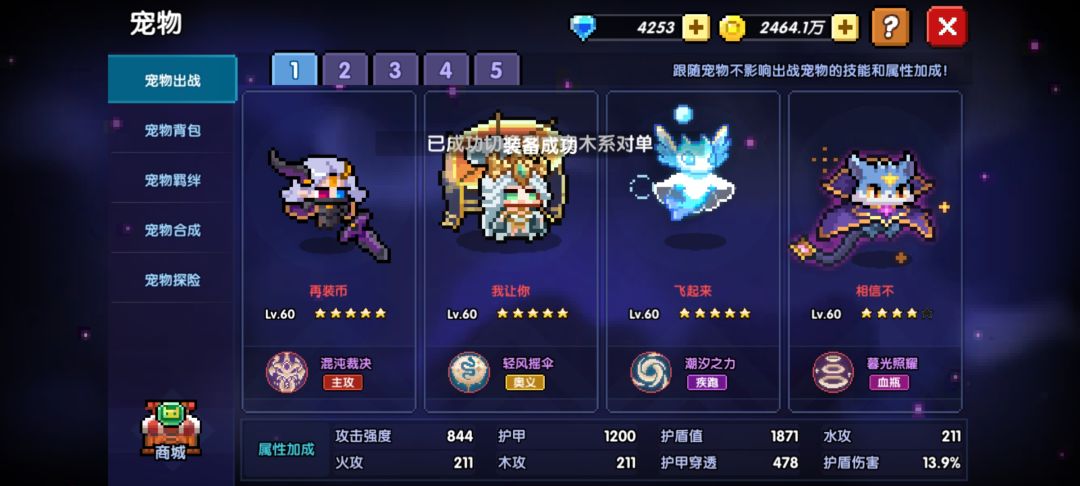 宠物(这里只是展示一下练度,并非最优搭配):