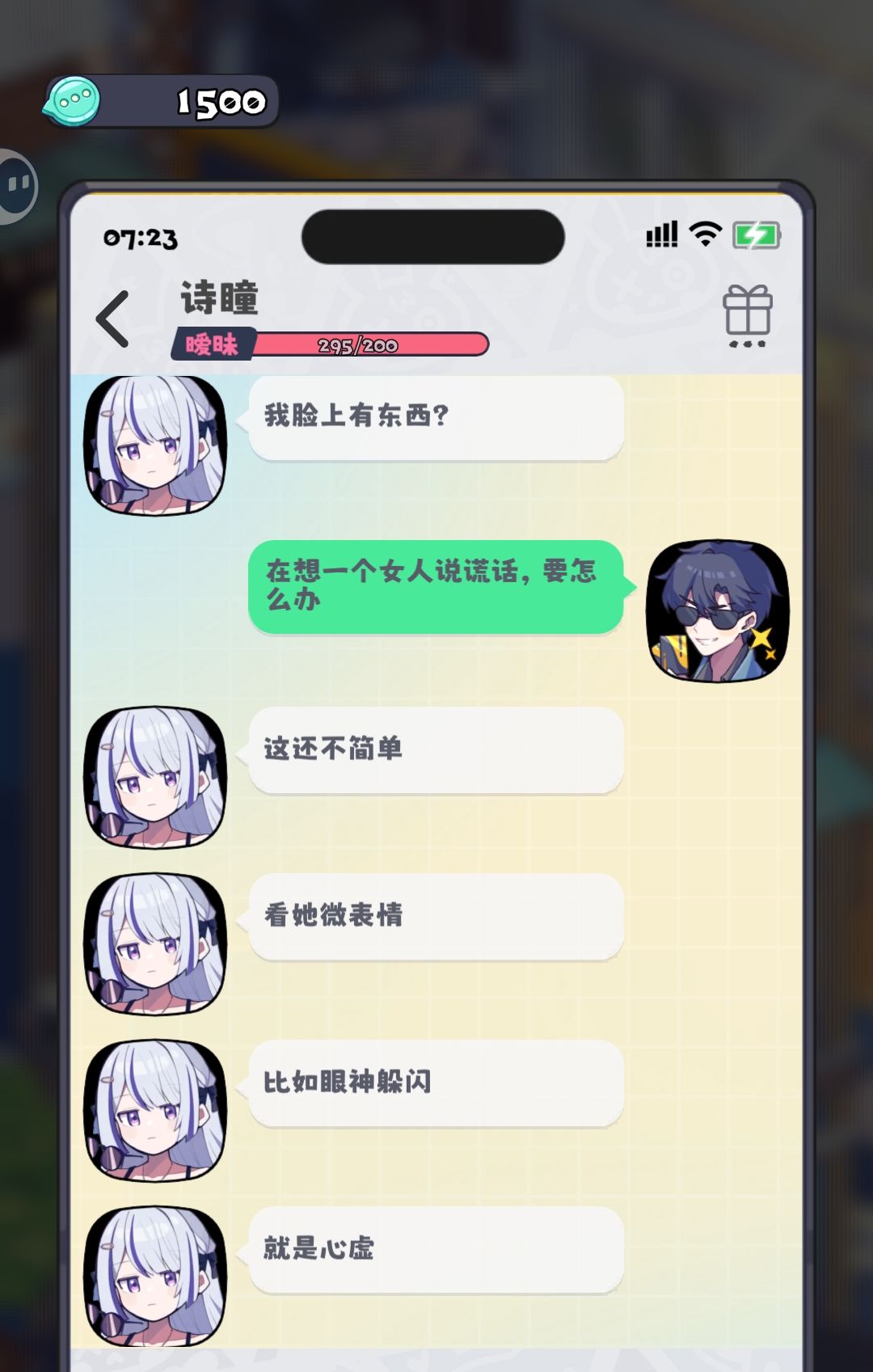 另:若撩诗瞳时出现“诗瞳:气氛都到这了,别问,问了,她就说工作
