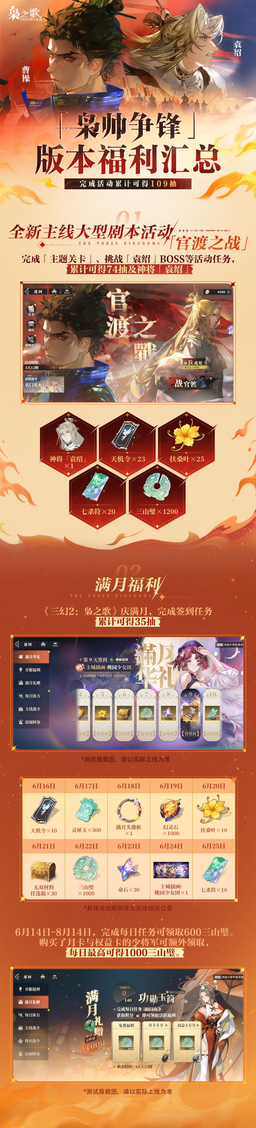 ➤「官渡之战」:完成活动任务,累计可得74抽及神将「袁绍」。