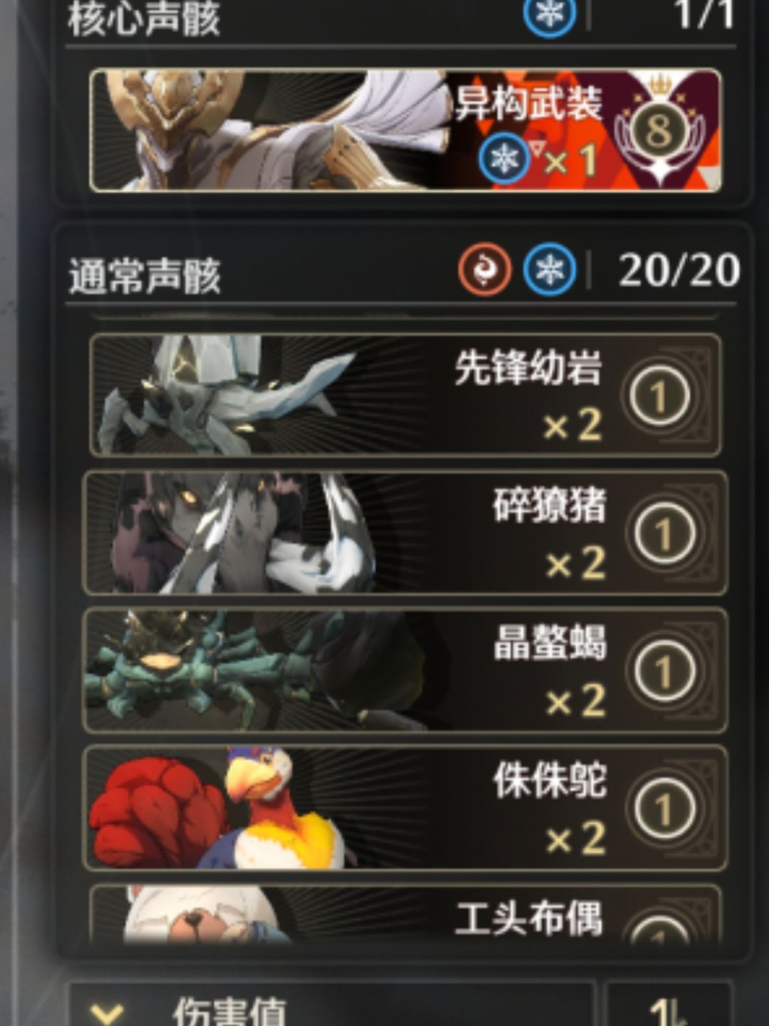 解锁核心条件的翼守技能的蜥蜴、鸣泣战士。