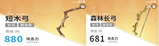 辉也是低倍率多段数模板,因此前期依旧是短木弓,后期选用森林长弓