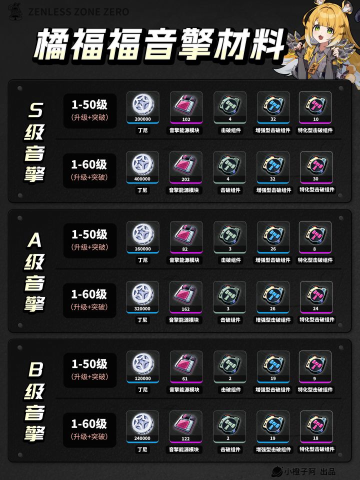 绝区零丨橘福福 角色+音擎丨养成材料统计