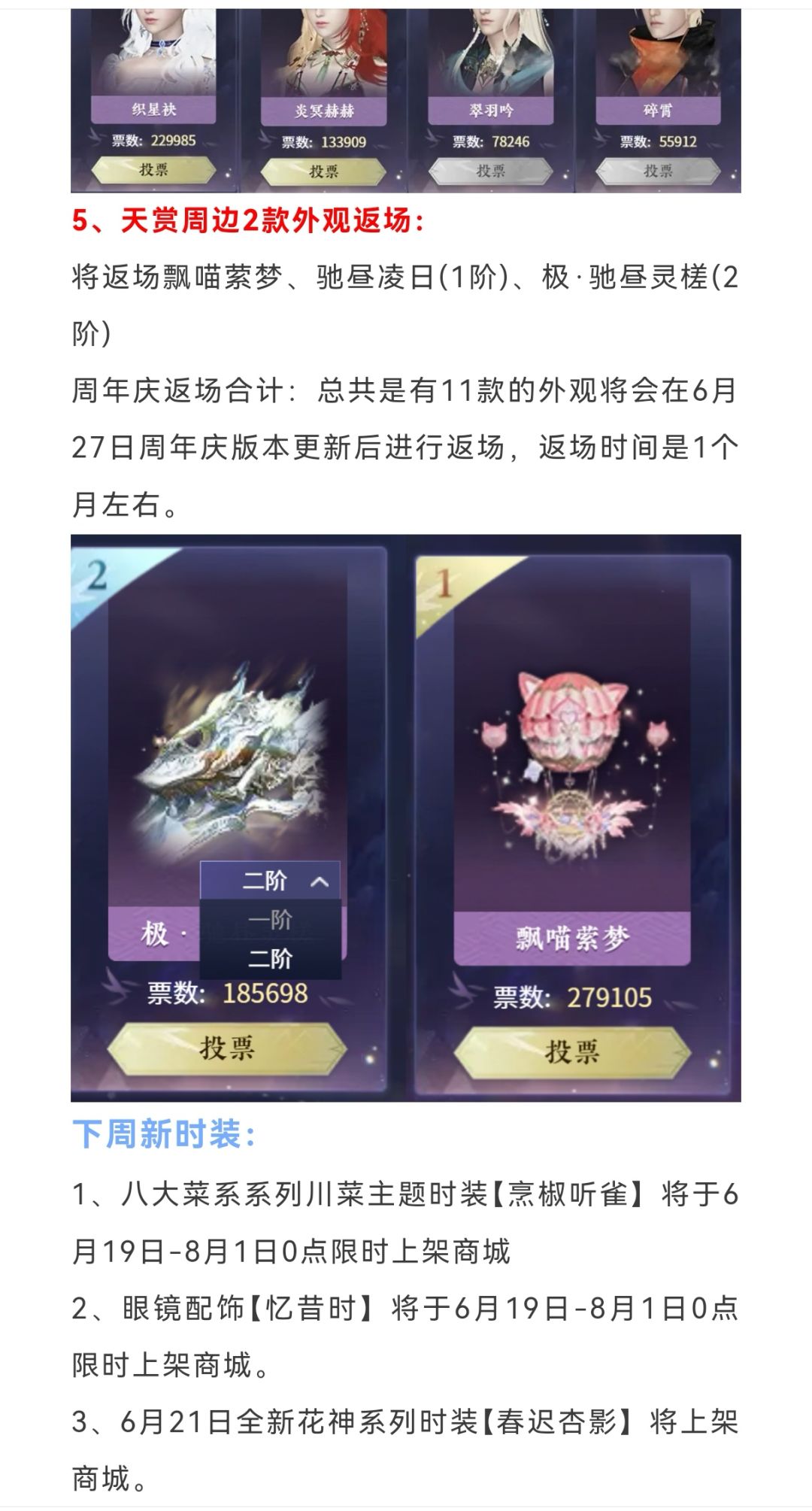 逆水寒下周2款新时装,周年庆11款外观返场,天赏发型返场4款,时装礼盒返场2款,下周福利一览!