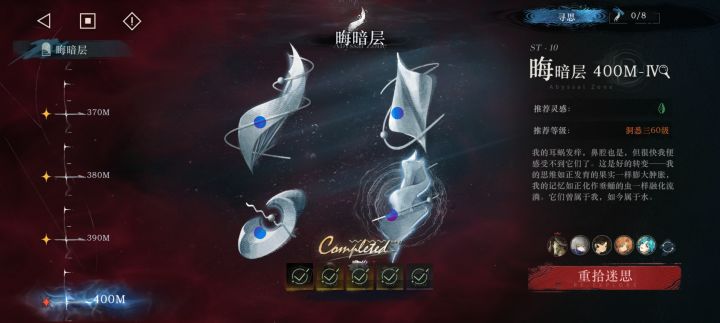 400-4(构思的关卡)不要用笃队,会变得不幸。(80%的本源伤害减免,每回合的负面效果转移。啧)建议用石化队,柏林负责上负面状态(因为是属性削弱所以不会被转移,什么夜色亵渎的回旋镖)同时大招也可以将boss的封印,提供更大的容错率,安安和槲寄生是必须要带的,而且都要开狂想,最后一位,带一个强力的木属性伤害角色就可以了(即使是305也是可以的,不过很吃手法。)这里建议带石化鹿和冷周六,手法上更简单一点。如果有生存压力的话可以带狂化苏芙比