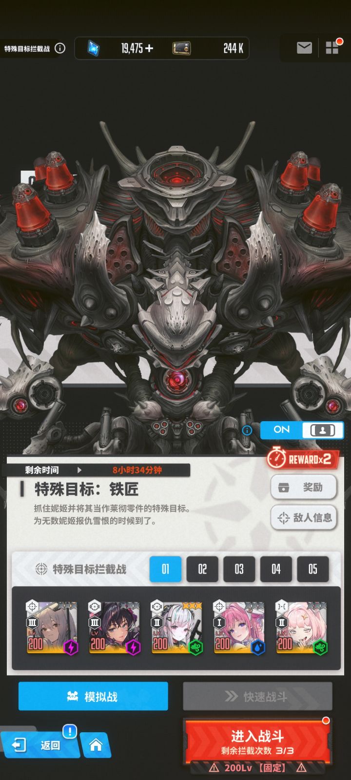 铁匠应该是手游最好九的特拦吧,这个特拦最简单的打法是哈兰+红莲+Doro+任意带回复的四五号位,打法基本全自动,但是有三个点要注意,第一是第一次放技能要等第一波飞弹出来再放,第二是阶段七开始就记得要打红圈,第三是第一波红圈后记得留技能清飞弹,如果你有Doro基本上是无压力到九,如果没有就慢慢磨,核心打法是需要两个高伤群攻,如果没有两个高伤群攻打飞弹会非常困难,如果有一个高伤群就有机会到五,当然一定需要一个不放三阶段就有回血的妮姬,如果对大家有帮助记得给我点点赞哦