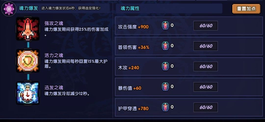 点满木攻、暴伤、首领伤害后补足面板的暴击率、穿透,最后上下平均分配攻强