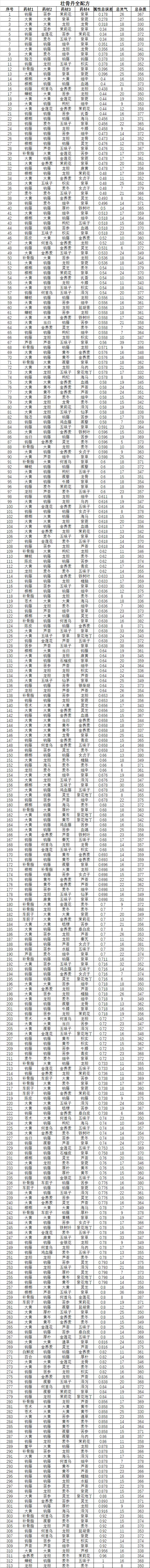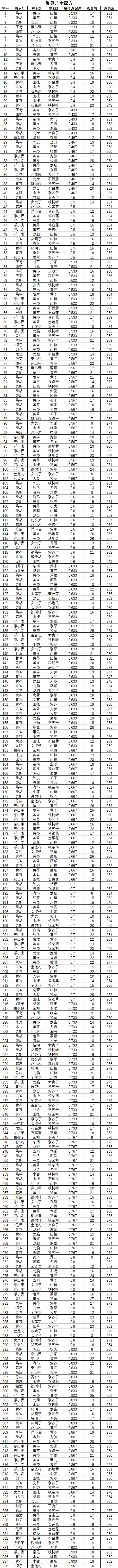 所有配方供各位参考。虽然可能存在个别配方重复(猜测,资料统计重复登记),不过应该不会少配方。