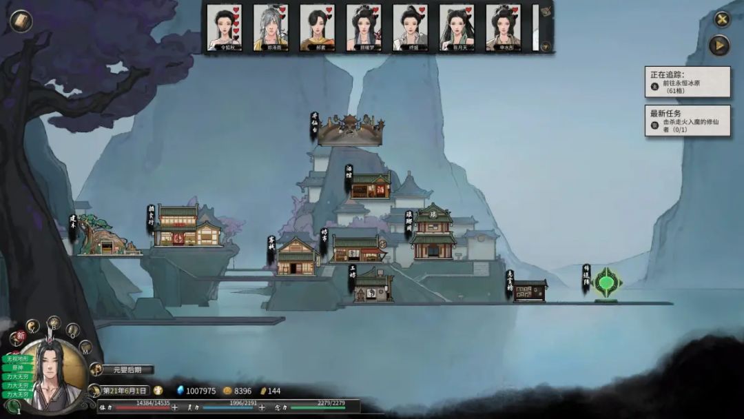5、大地图右上角会有任务追踪,左上角会有大事历程和信件。6、每次开始游戏时,大地图中都会在随机位置刷新特殊的建筑,也有部分建筑时在游戏开始后,根据游戏的事件以及季节的变化限时出现在地图中。例如剑冢、远古遗迹、万年树妖等等,玩家可以进入该建筑中触发固定的事件。
