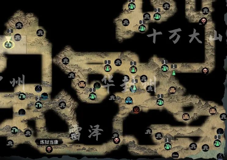 十二、地图1、在大地图上行走会消耗时间大概一个格子耗费几天的时间,不同的地形,消耗的时间是不一样的。暂时未能飞行,但是会有坐骑系统。坐骑可以大大减少行走大地图的时间,甚至决定了能否进入一些特殊地形。2、每月大地图上的NPC会自行AI刷新一次。所以有时候寻找特定NPC会有点困难,每次开局刷新的城镇和宗门都是随机产生的,每个格子会有安定值的设定。