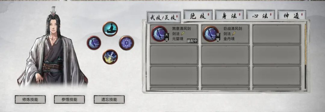 7.技能的威力会根据熟练度境界来决定:每个境界会解锁不同的技能词条,这个直接决定了技能的威力与搭配。可以能过修炼来解锁词条,可以通过参悟来刷词条数值。8.技能需要秘籍学习成功后才能正常装备使用。学习秘籍会有修炼难度和修炼资质需求限定,每次学习度会根据心情,悟性以及灵石来决定。武技的被动效果能增强同类型效果的绝技以及神通的伤害威力。