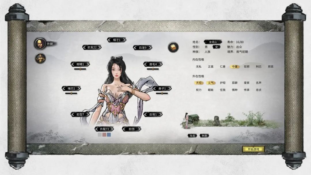 - 开局性格选仁善。天伦+爱家。你会发现闲聊基本不会出现话不投机半句多,而且每个月都有npc主动送礼送双修,就是太烦人。