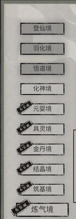 二、难度选择难度分别为:普通,困难(普通模式下达到金丹解锁),极难(困难模式下达到元婴解锁),地狱(极难模式下达到化神解锁),洪荒