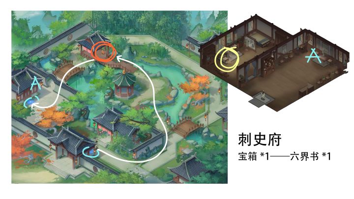 雷州 刺史府 共:宝箱*4 六界书*3 支线*1
