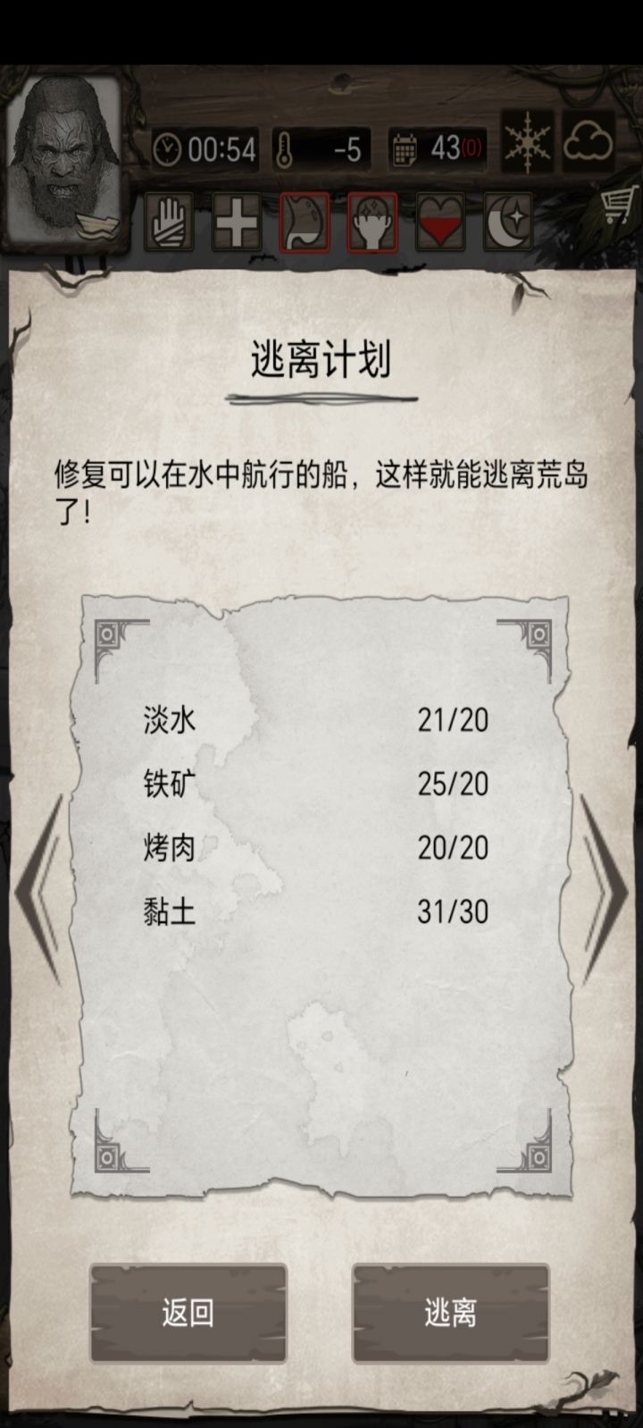 11.逃离用的物资,如图所示。(黏土、铁矿如果不够,可以找野蛮人交易)