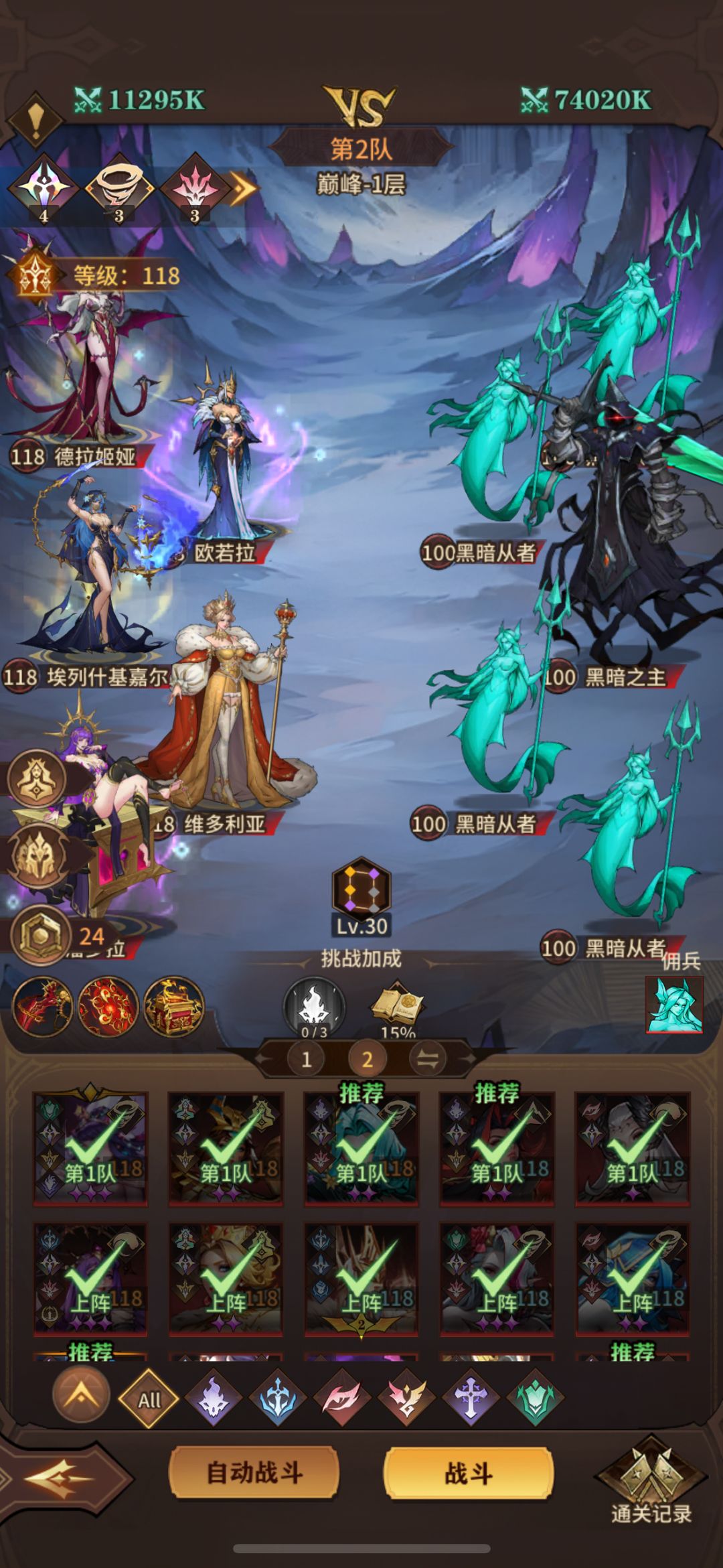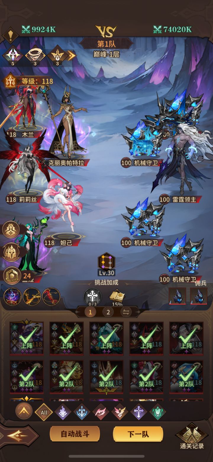 卡了好几天以后茅塞顿开搞出这套女王艳后通关 有差不多阵容的可以参考一下(二队女王或许可以替换其他角色 我用其他阵容打这关是回合到了主c没死)