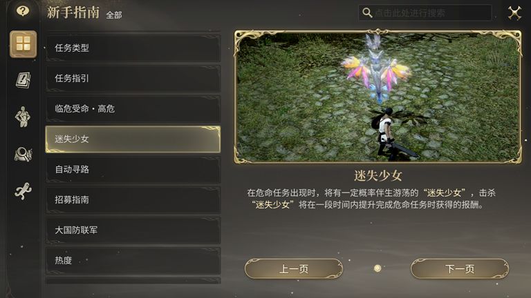 地图探索玩法:在端游临危受命玩法的基础上,水晶世界新增了高危临危受命任务,此类任务会具有更高的难度以及更好的奖励,将随机出现在地图中。同时还新增了会在临危受命任务中随机出现的迷失少女,击杀迷失少女可以在一定时间内提高完成临危受命获得的报酬。