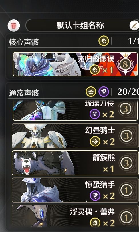 6 3费卡箭簇熊(可用其他三费),幻昼骑士(基本不召上场而是作为后期变幻使用)
