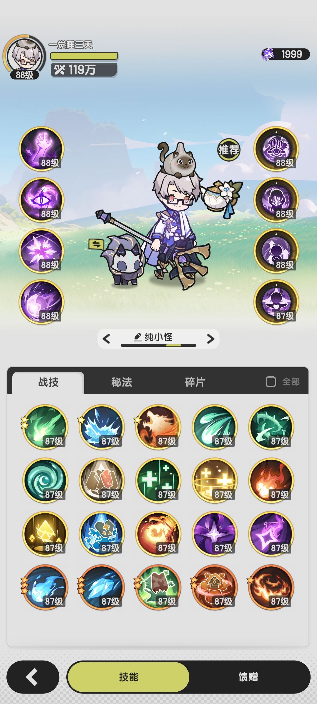小怪混boss:如名。战技抉择:虚弱咒文和暗影冲击。虚弱咒文有减攻,暗隐冲击爆发高,凹不过去的图可以看看伤害,如果一套伤害秒小怪只差一丝血虚弱符文换暗影冲击。秘法抉择点只有暗亲和和元素精通(哪个加成高选哪个),由于是推图,复活必带,直接多一套爆发(因此即便可能空终结也带了终结,毕竟死前小怪还没死完终结打不到boss身上也没凹的必要了),不考虑会心率是因为会心秒小怪不稳定。
