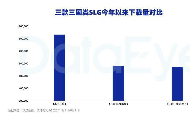 数据是惊人的,在25年,率土之滨的下载量高达80W,这一数量远超同期SLG数倍手游,即便是竞争最激烈的三国题材SLG,它的下载量也远比对手要高。