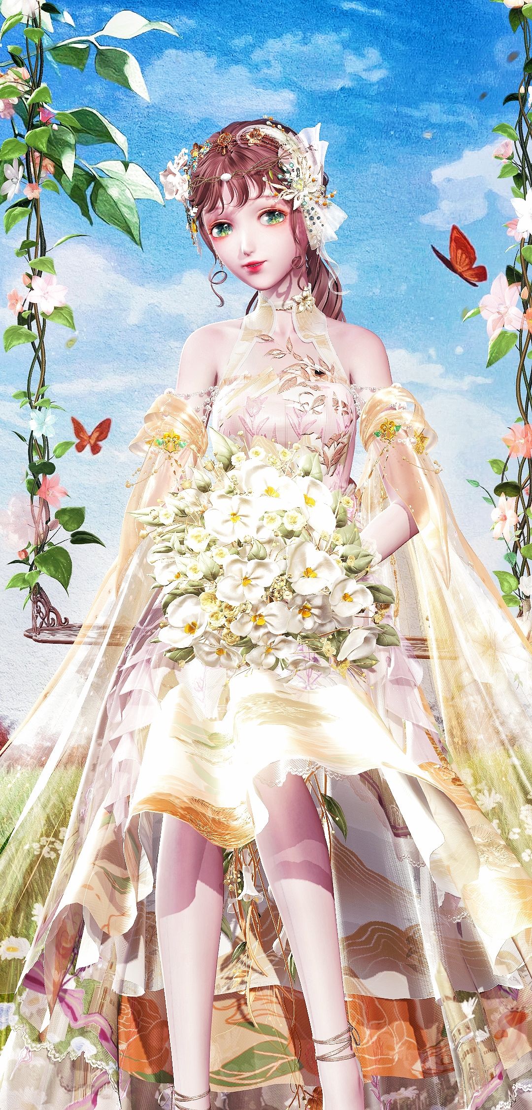 搭配文案:“静坐于秋千之上,随风荡起春信的涟漪,而这一刹那的美将永远的留在此刻,定格于我的眼前…”
