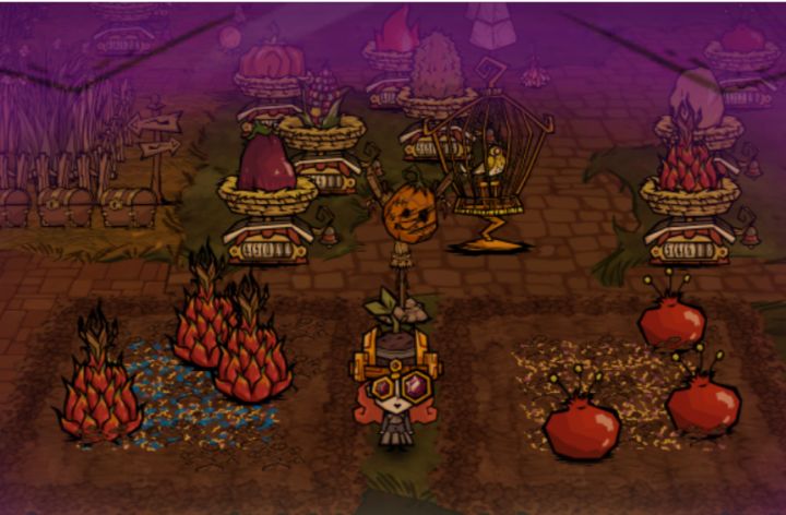 只试过在家园种植,调个适合季节,老老实实单一种植,做顶耕作先驱帽,可以看到肥料的颜色,缺哪个颜色就补哪个肥料,可见图4,分别为鱼腐烂物,便便,腐烂物,每个阶段做好对话跟浇水。春季好像除了辣椒跟南瓜都能种,下雨时候也不用浇水。