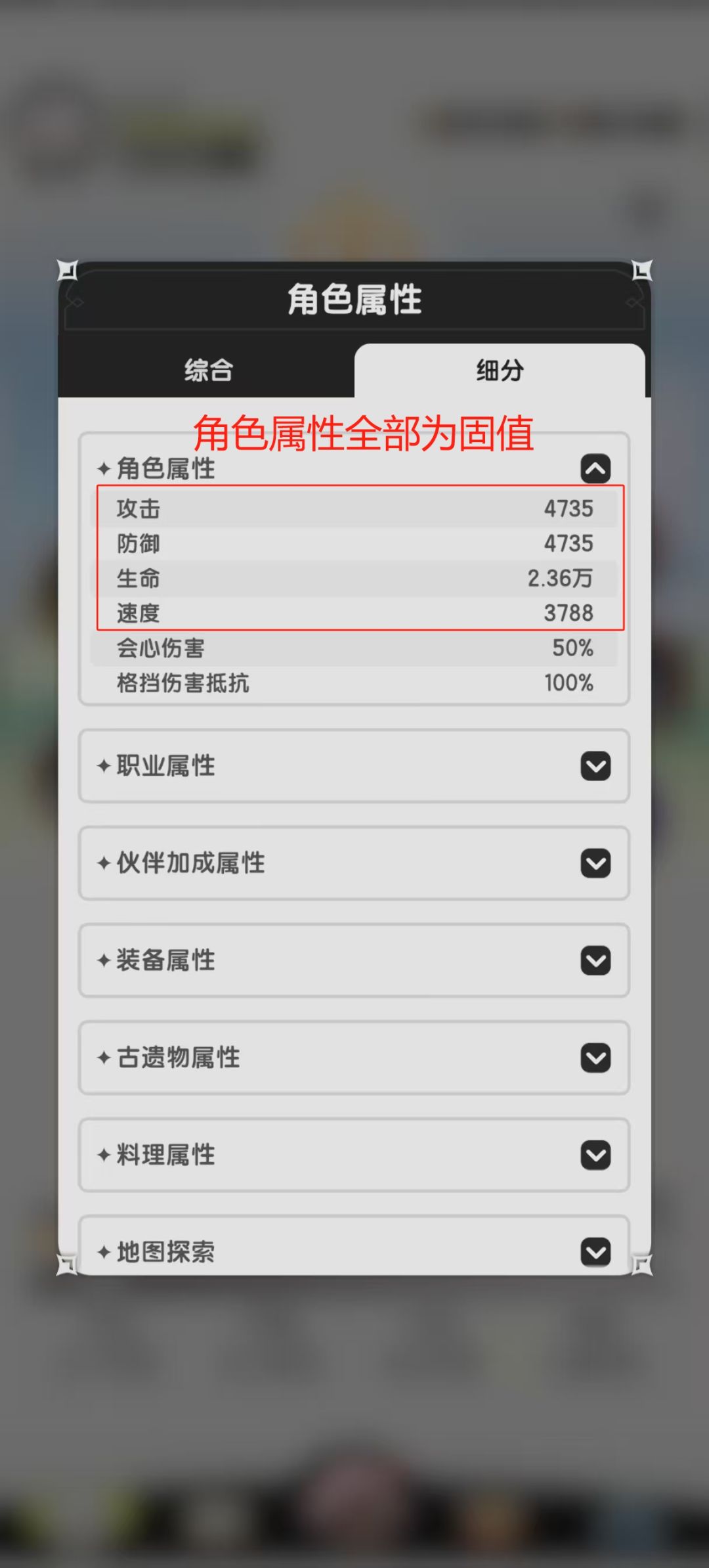 但是角色属性中我的攻击和防御都是4735,都不符合我们上面计算出来的基数。