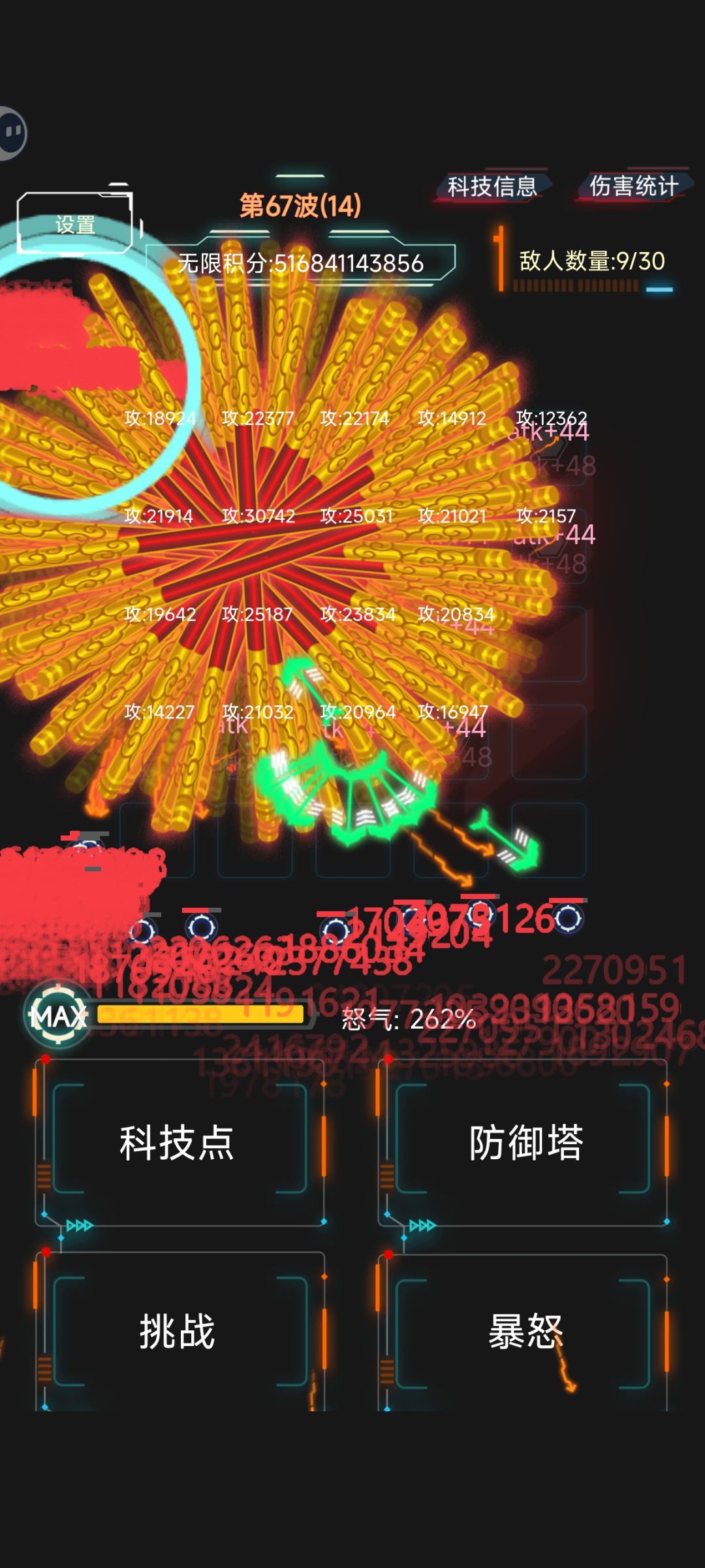 原理二:老练塔随波次加攻击频率,配合副塔一爱心两范围可以不断加攻击。