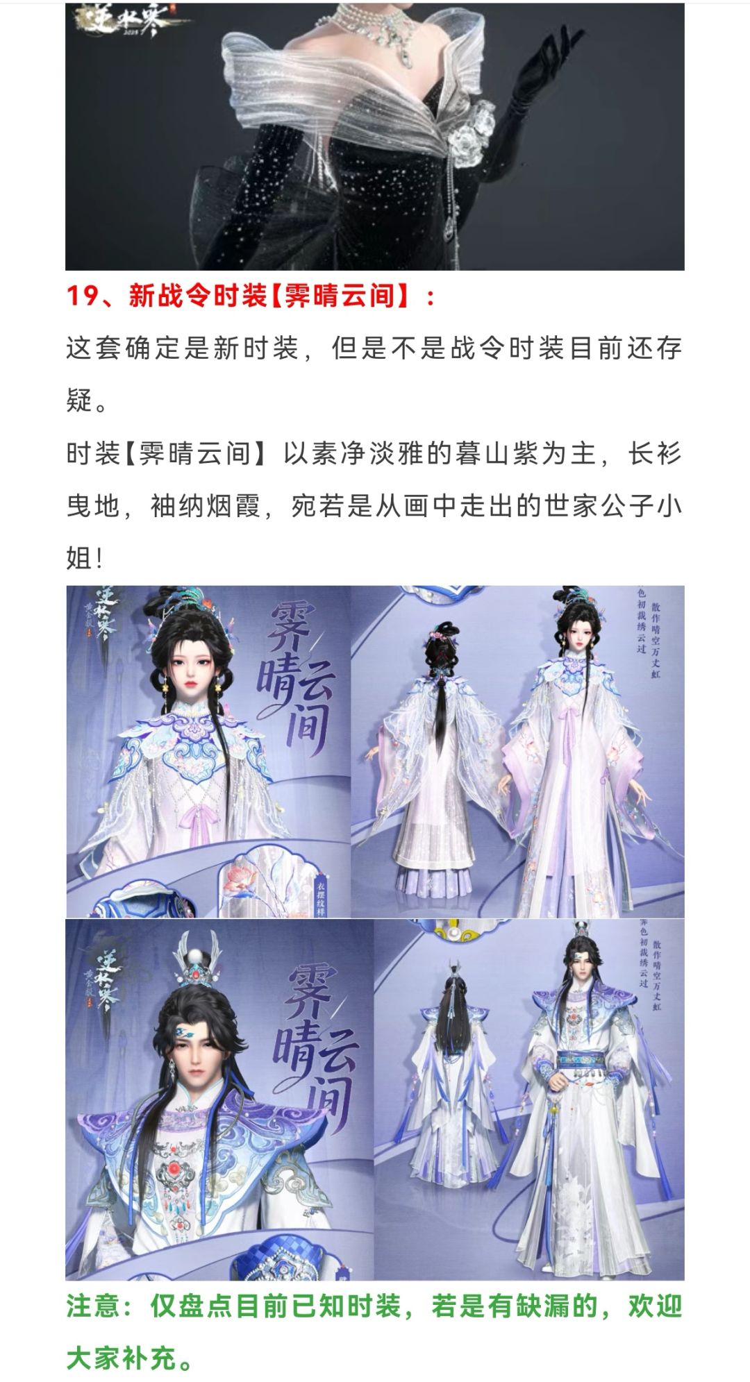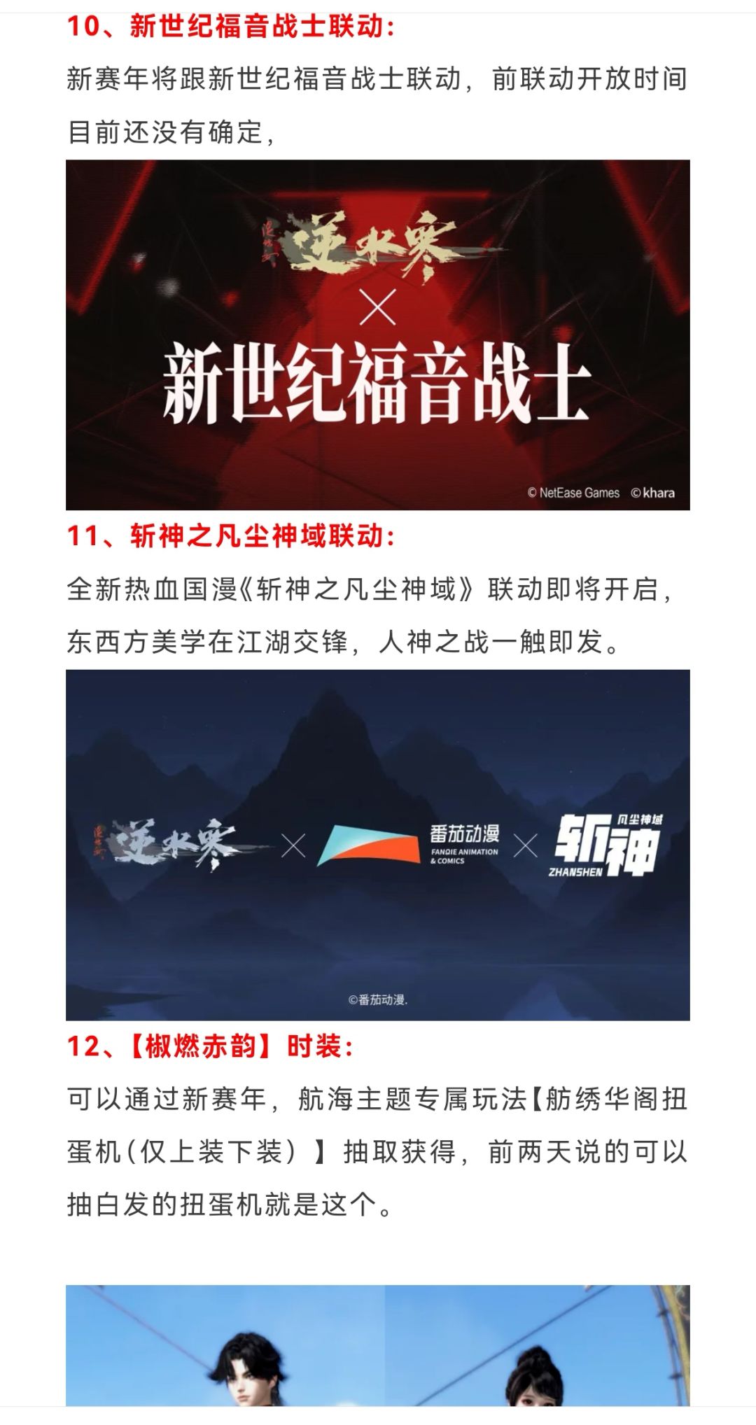 逆水寒新赛年23套新时装,2套主线时装,1套扭蛋机时装,下周2套时装,周年庆4套时装返场,多款联动时装!