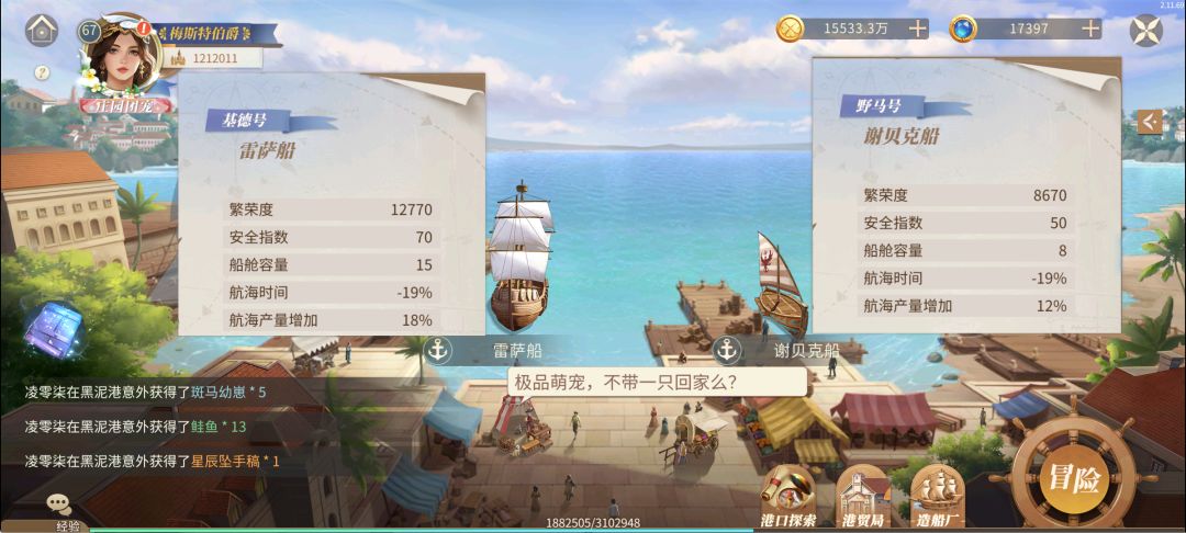 左侧大船的仓位更高,出航安全指数更高,提供繁荣度更高,基础航海产量更高,所以改良船时优先大船,每日出航次数优先大船,小船只跑固定的3次。
