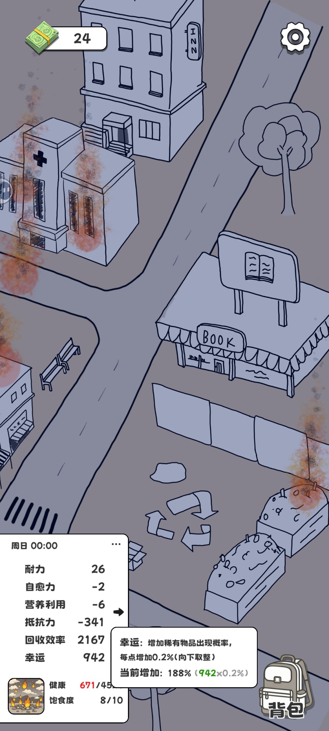 p2-p5:捡一次垃圾随便收获7/8颗钻石 一颗钻石4k-6k+ 这是捡垃圾吗?这纯暴富啊 幸运值拉满拉爆!周日天气健康-10/h?讲个笑话 不如我啃一口鸡腿扣的多 啃鸡腿甚至健康-344 健康值拉满也只能吃14口💀