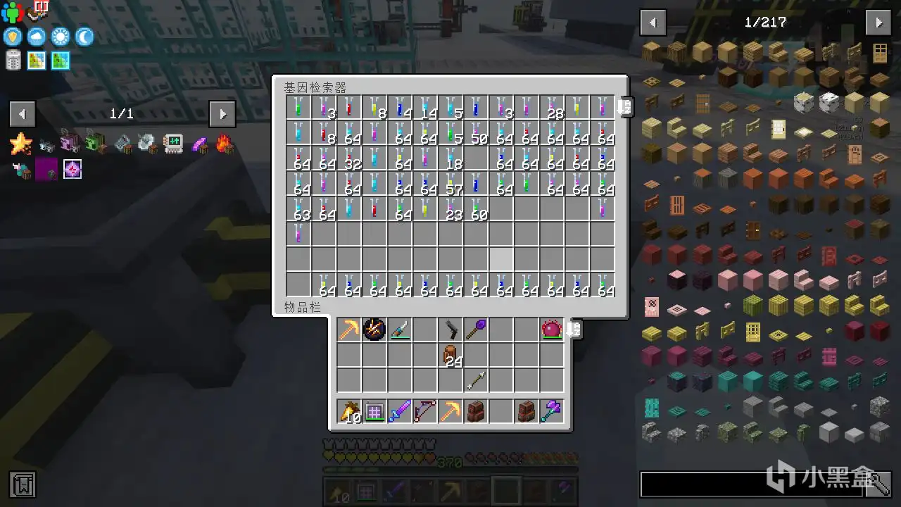 最后是第三部分,收集与搅拌。由于榨取的基因会到处乱飞,我们需要一个收集装置。这里我用的精妙存储,和基础物品收集器。