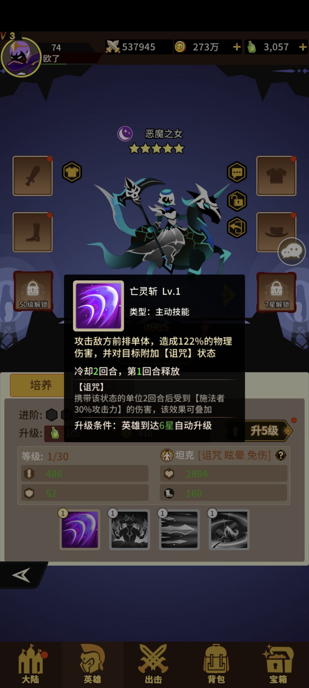 免伤坦克获取难度高!技能升满加符文免伤在六七十左右!浑身带诅咒!眩晕!最强之前排没有之一!技能到红一就带眩晕!