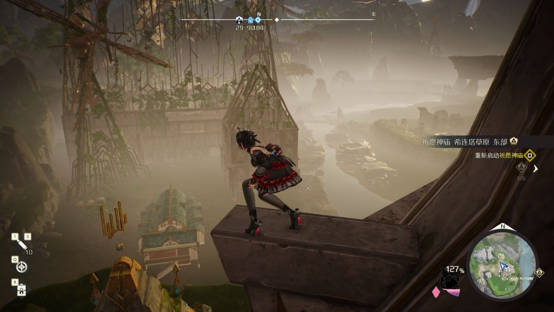 开放世界探索的游戏主角的人物性能一般都不会太差,毕竟偌大的一张地图,主角只能慢悠悠地走,不能跑不能跳,碰上点高低差还被迫去绕远路,这想想就是地狱。而莱莎的炼金工房3就犯了以上毛病,莱莎虽然中后期移动很快,但是Z轴探索就是一个巨大的薄弱项,无处不在的空气墙,几乎没啥大用的跳跃,这就使得探索的过程非常僵硬,只能以固定的路线进行。而到了优米雅,这几乎就是残疾人直接从轮椅上起飞的程度了,高低差只需要有能量怎么摔都摔不死,小障碍直接跳过去就完事了,碰上墙更是无敌的三段跳,后期甚至无墙空中三段跳,探索路上畅通无阻,看到一个问号,直接标记一下方向直冲过去就完事了,大部分情况也只需要稍微绕一绕跳一跳就能抵达。这样的人物性能,一方面带来的是探索上的能有更多的方式,让玩家不容易感到枯燥,而另一方面也是缩短了玩家找路的时间,玩家可以在主线路上看到个问号就顺路拐过去,沿路顺手采集一些炼金素材,依靠极强的人物性能直接当场把问号解开,然后飒爽地返回主线路上,这样既保持了跑图的趣味性又不会太浪费玩家的时间,已经可以算得上是不错的开放世界了。