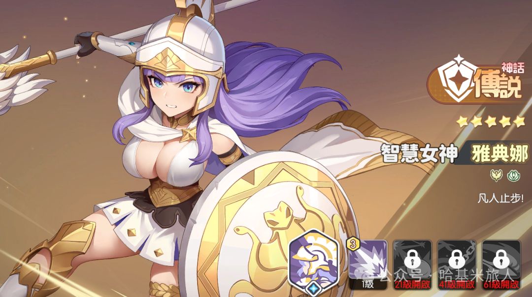 波塞冬活动送一个,能快速紫1,紫3对于平民玩家来说即是毕业,只做工具人,不考虑输出。推图和pvp都能挂。雅典娜在推塔中手操上限非常高,也是目前圣堂队的核心角色,甚至说圣堂可以没有加百列,但不能没有雅典娜。同样,在绿队中也有很高的手操上限,配合平民战神牛牛可作为平民提高推塔上限的利器。缺点是不能像波塞冬那样紫三停手,需要继续升星。