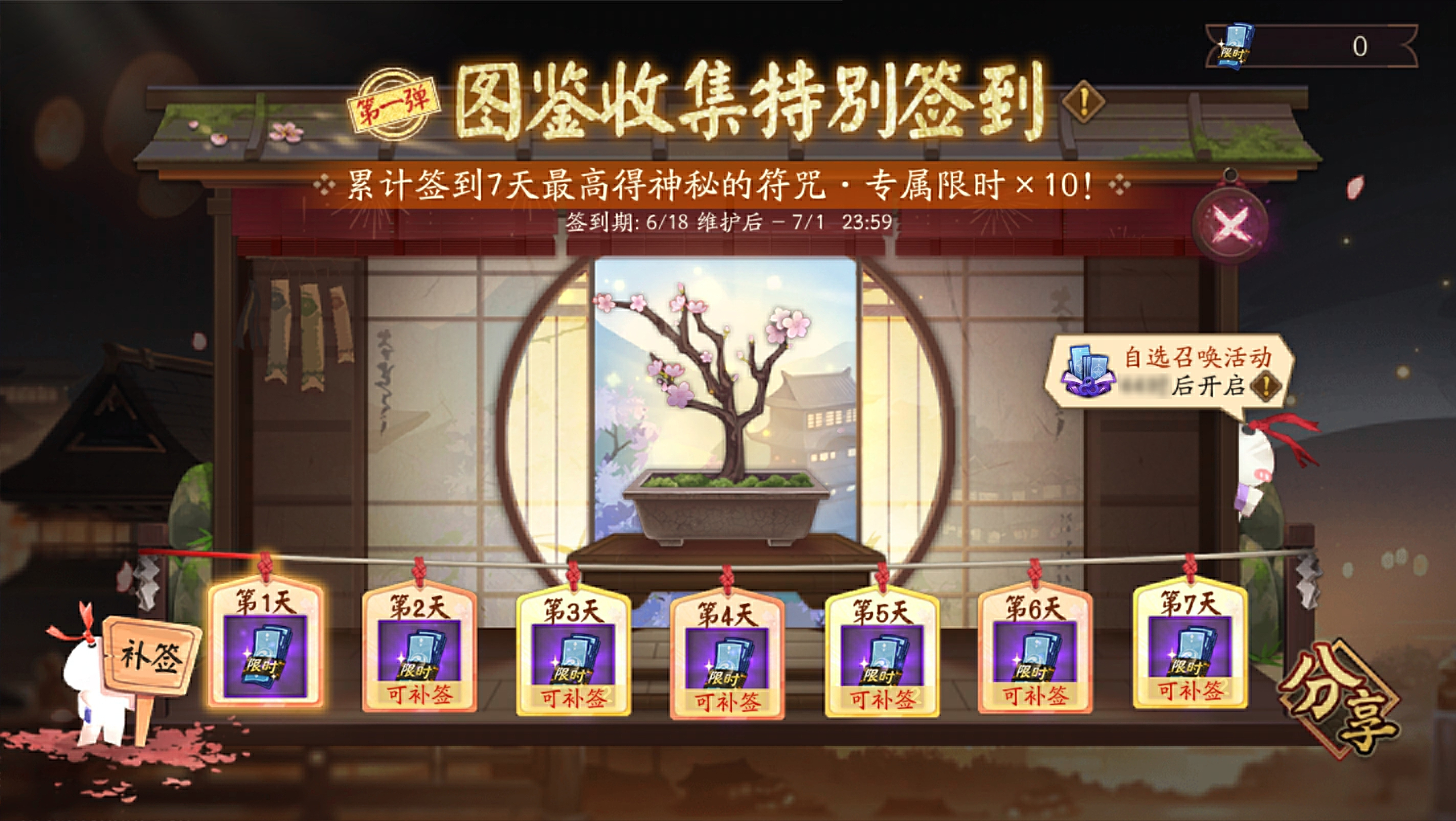※活动期间,大人每日登录游戏即可领取签到奖励,累计签到7日最高可获得10张「神秘的符咒·专属限时」!
