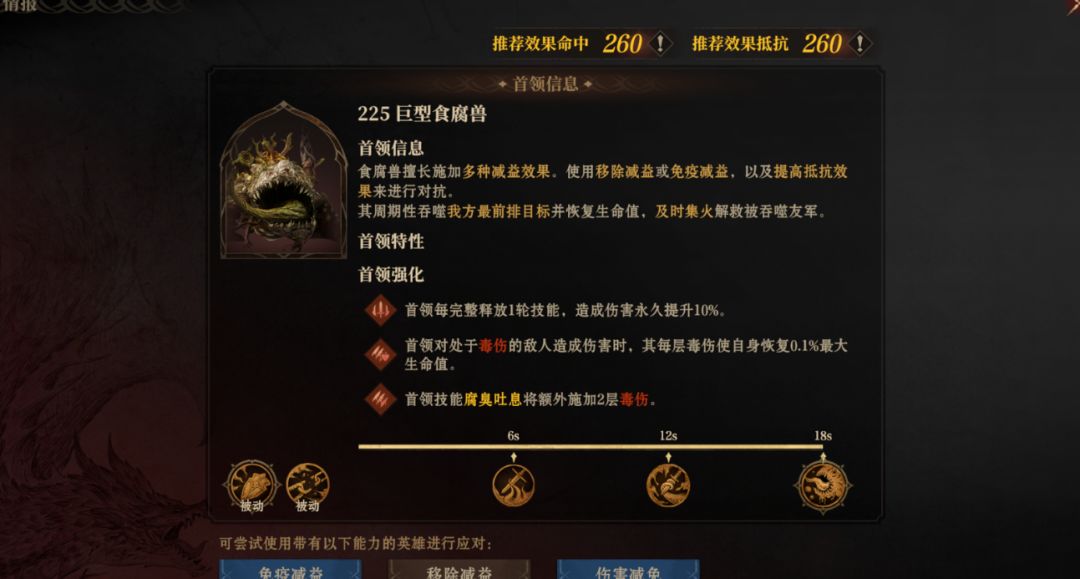 腐烂本有两个难点,一个是boss会无限给我方施加负面状态,一个是会吞噬前排,输出不够,前排很容易暴毙,且boss会回血。这里有一张紫卡完全能够应对boss的这两个难点,她就是暗弓泰雅,大招会给我们远程单位施加免疫减益和隐身状态,隐身状态的情况下,boss的吞噬技能是无法选中我方人物。