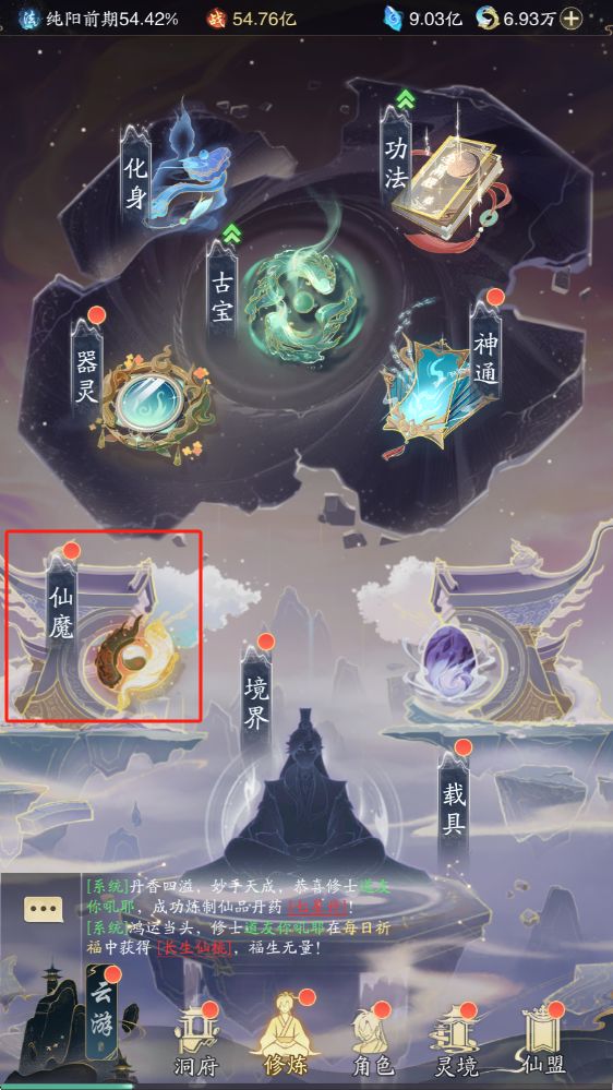 境界达纯阳境界的道友,可以在“修炼”界面点击【仙魔】图标,即可选择修仙或堕魔之路。选择之后想要更换,可在灵界开启14天后进行转修,后期资源丰富的道友还可以选择仙魔双修,成就无上神通。