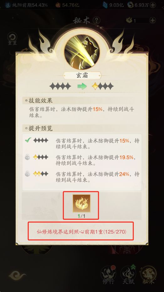 以修仙为例,想要解锁玄霜秘术,不仅需要一个仙之真念,还需要修炼境界达到照心前期1重。