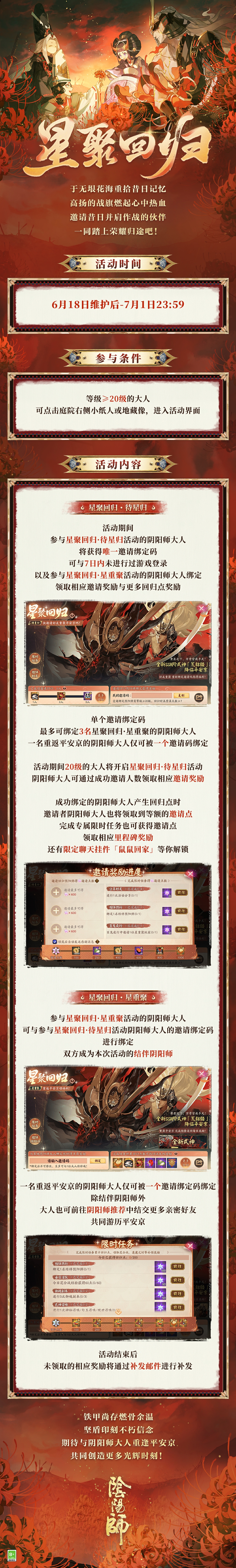 「星聚回归」活动6月18日开启!邀请好友重返平安京,于火照般的征途中寻回炽热初心吧!