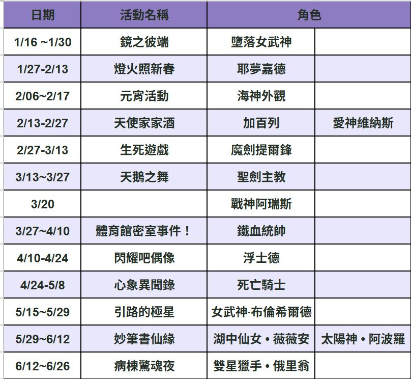 6/16 更新限定新角池台服活動期間 (陸服有可能已重新調整)