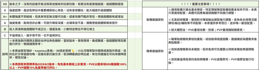 本篇指南以台服《龍魂旅人》6月2日版本為基準,對應大約開服五個月後的遊戲進度。所有角色皆以上彩鑽強度實測為主,PVE部分以龍骨越戰100%以上,PVP越戰10%以上為標準,對戰表現進行綜合評估。