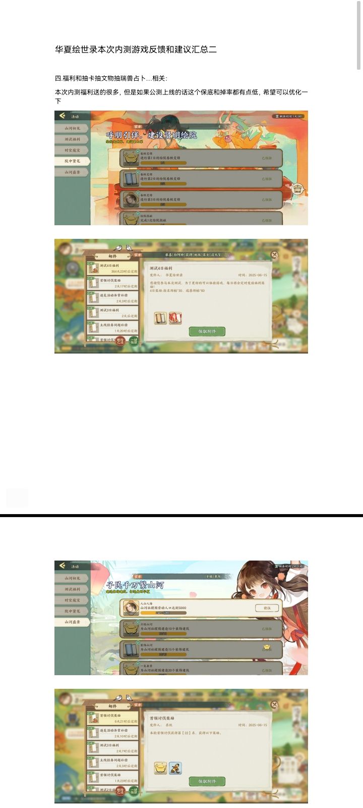华夏绘世录内测游戏反馈和建议汇总一