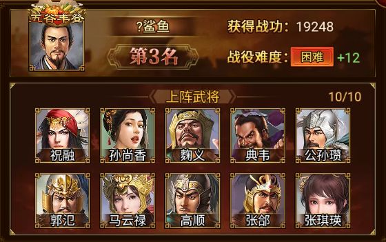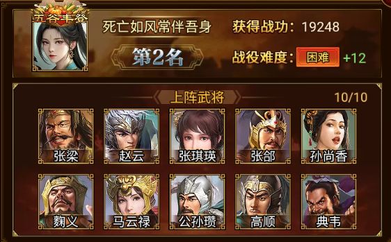 死亡如风常伴吾身 军团在这次濮阳之战中同样以 19248 优异战功攻破困难12难度,赢得第二位的宝座,恭喜!
