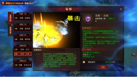 二阶:【觉醒·旋风斩】第一个控制技能,虽然描述没说,但实际带有减速效果,前期用金币升级即可;