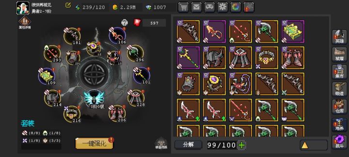 紫色开始就会有套装,凑齐八件套提升能有一倍,所以你在卡关的时候可以尝试凑套装先。