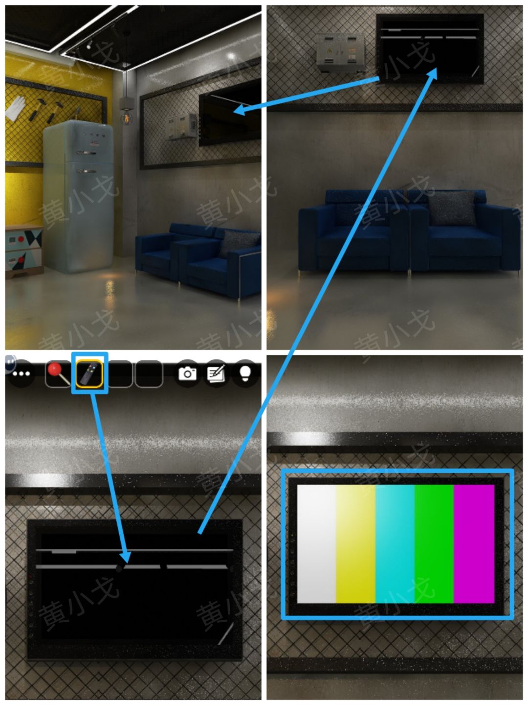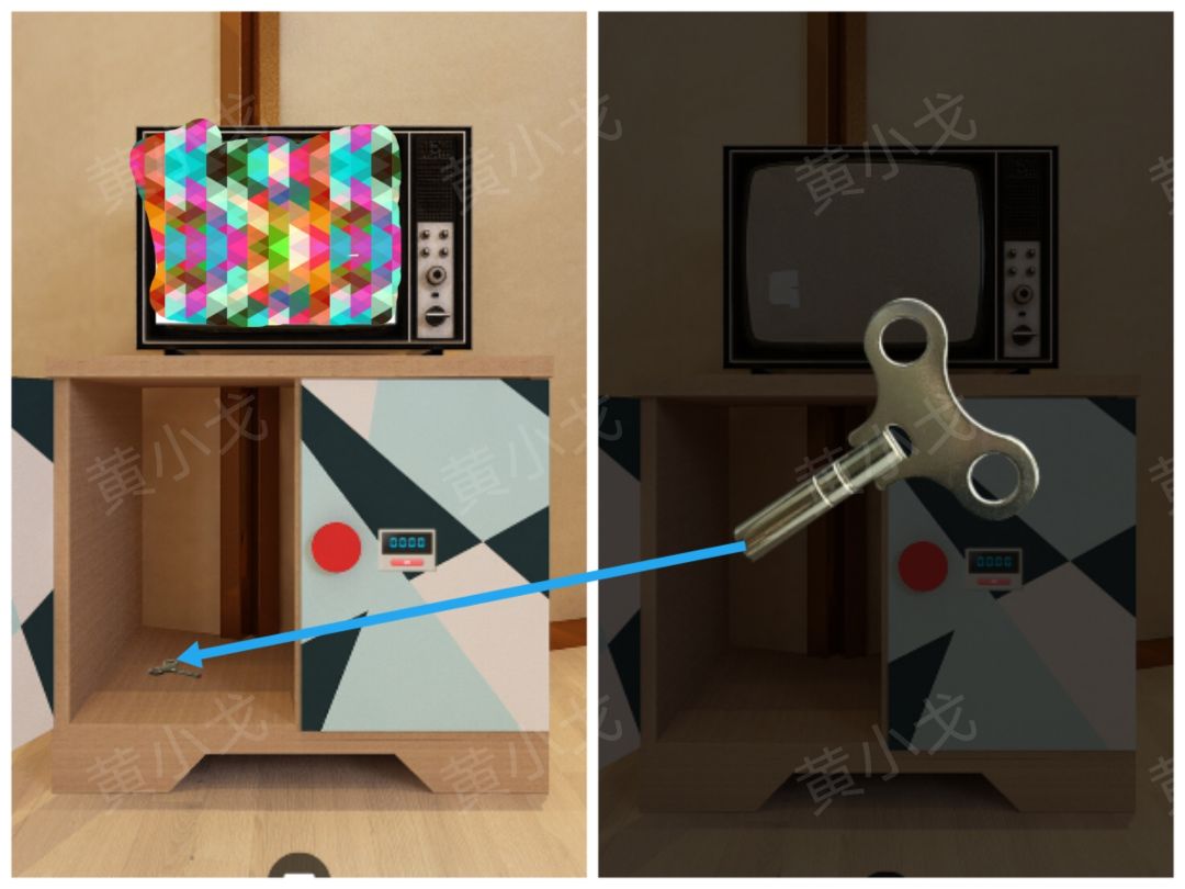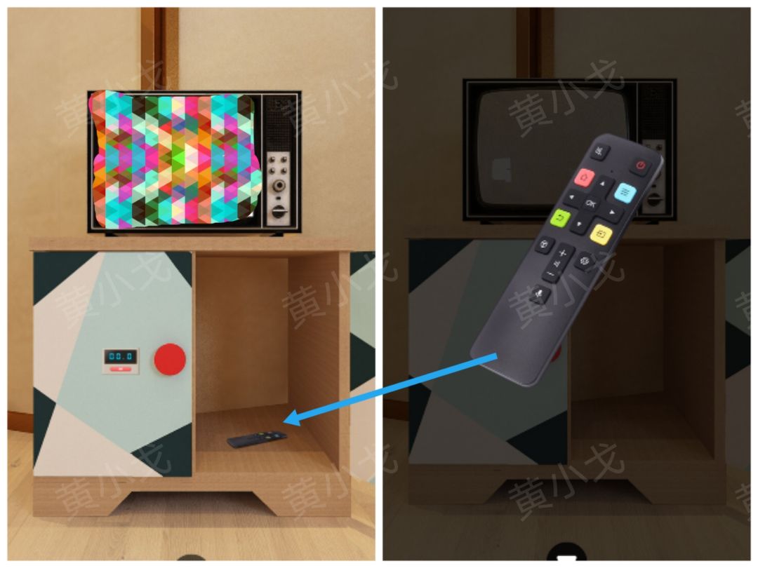 17.点击柜子第二个抽屉上的密码锁,根据[冰箱]场景电视上的线索,调整密码锁