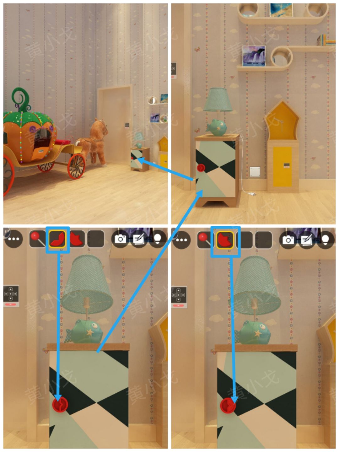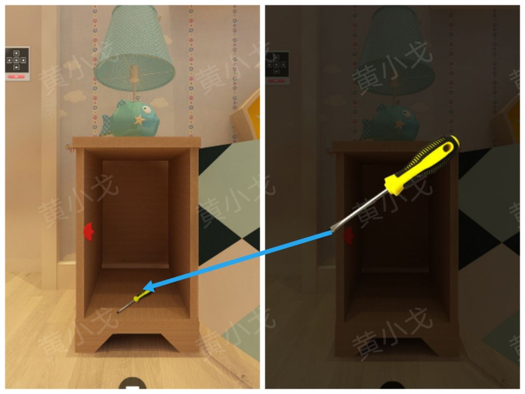 8.点击左侧台灯柜子,嵌入两块【徽章】